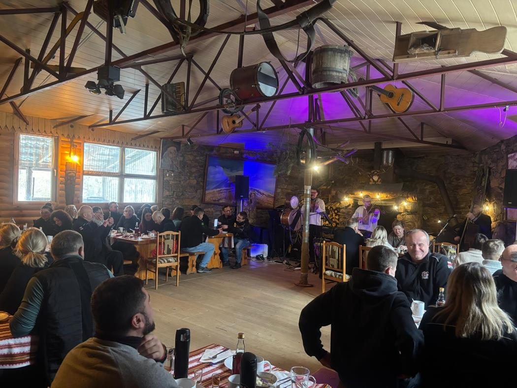 Po półtorej godzinie przemieściliśmy się do Ośrodka “Latarnia Wagabundy” na biesiadę- spotkanie z kulturą i tradycją łemkowską. Poprzez kuchnię, a także wyjątkową muzykę, organizatorzy pokazali nam historie tej ziemi. Biesiada była czasem, w którym wszyscy razem bawili się, tańcząc i śpiewając Do rytmu przygrywała ”Kapela KARPATIA”, która potrafi rozweselić każde towarzystwo. W trakcie występu kapela opowiadała również o kulturze i historii regionu. Liderem kapeli jest znany przewodnik bieszczadzki, wspomniany już “KIJU”. Na stołach pojawiły się dania kuchni regionalnej, prawdziwa bieszczadzka kwaśnica, fuczki łemkowskie (placki z kiszonej kapusty z ziemniakami), regionalne danie hreczanyky (kulki z kaszy gryczanej z mięsem) proziaki, ciasta, wędliny i oczywiście lokalne trunki. Gdy księżyc już wyszedł zza chmur, a na zewnątrz zapanowała bieszczadzka cisza opuściliśmy gościnne progi Latarni udając się w powrotną drogę do Przemyśla i Lubaczowa.